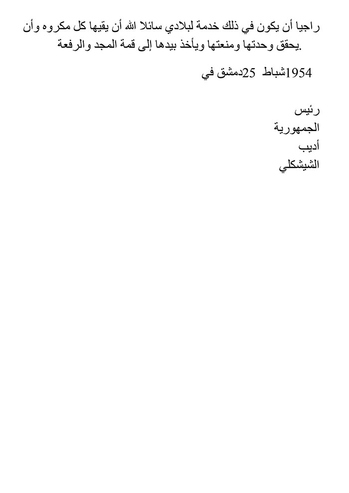 President of the Syrian Arab Republic Adib Al-Shishakli