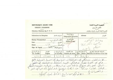 Telegram congratulating Mamoun Kuzbari on his electoral victory - 05 December 1961