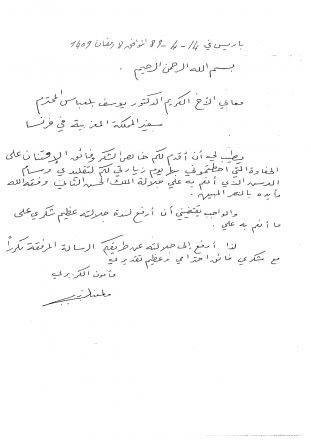 Letters to the King of Morocco and Moroccan Ambassador in France about Mamoun Kuzbari's naturalisation - 13 March 1989