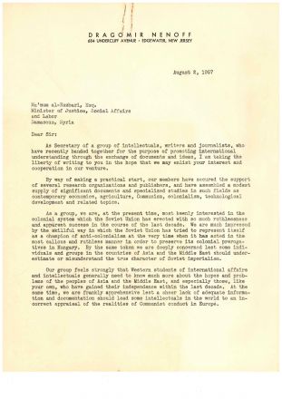 Letter from Dragomir Nenoff on the 'Hungarian question' - 02 August 1957