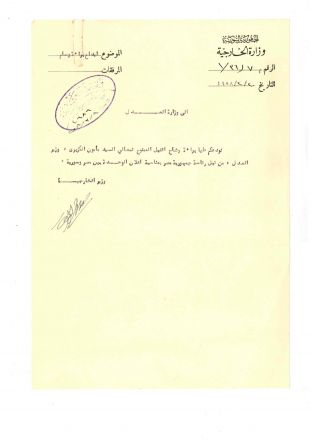 Letter from Dr Izzat al-Nuss to Mamoun Kuzbari accepting his letter of resignation as President of the Council of Ministers