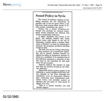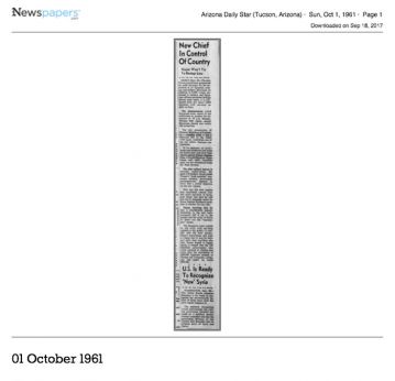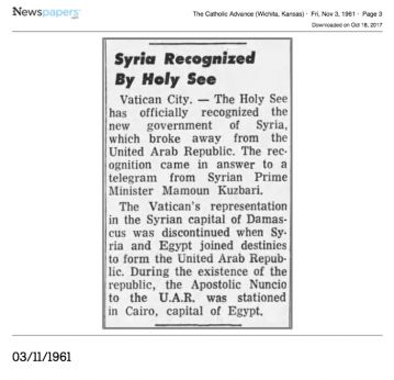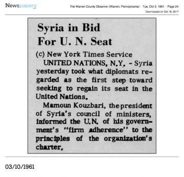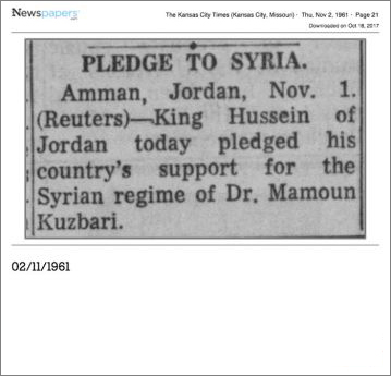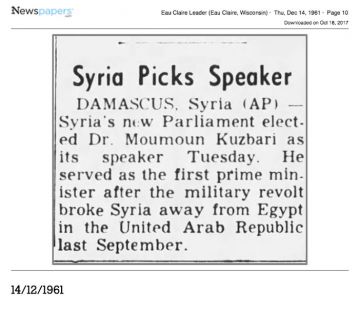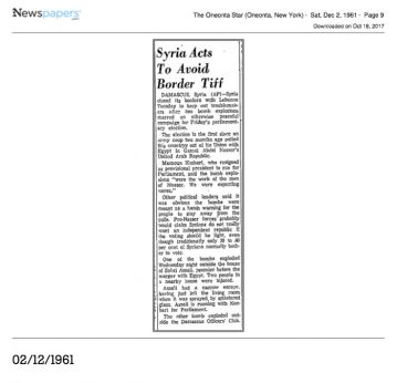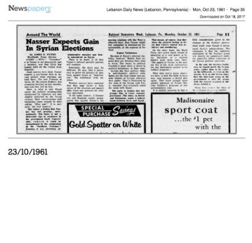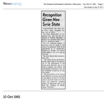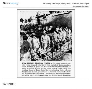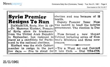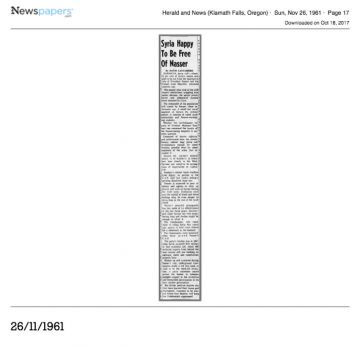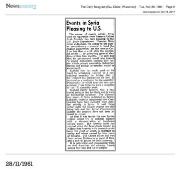 Events in Syria Pleasing to U.S. - 28/11/1961
