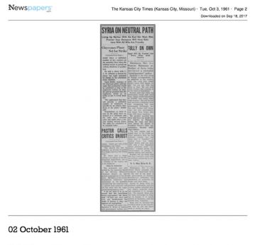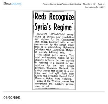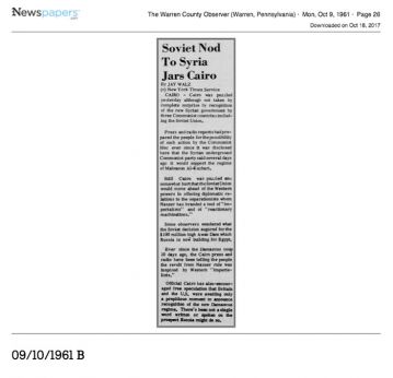 Soviet Nod To Syria Jars Cairo - 09/10/1961