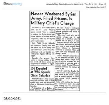 Nasser Weakened Syrian Army, Filled Prisons, Is Military Chief’s Charge - 05/10/1961