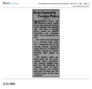 Syria Happy To Be Free Of Nasser - 26/11/1961