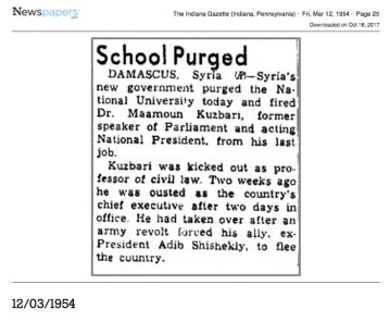 New York Times profile of Mamoun Kuzbari - 01/10/1961