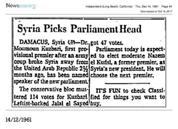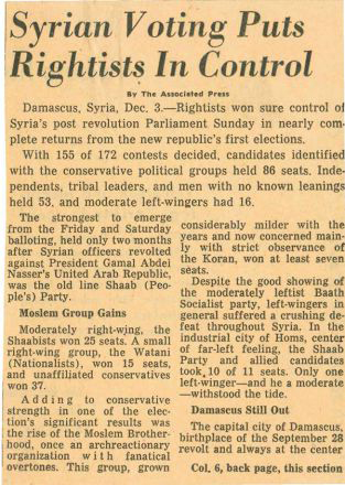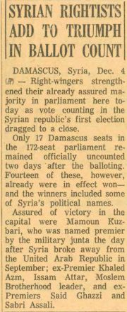 Moderate Rightist Politicians Gain Leads in Syrian Elections - 03/12/1961