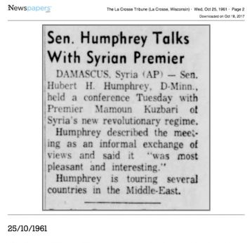 Sen. Humphrey Talks With Syrian Premier - 25/10/1961