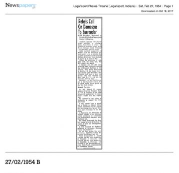 Rebels Call On Damascus To Surrender - 27/02/1954