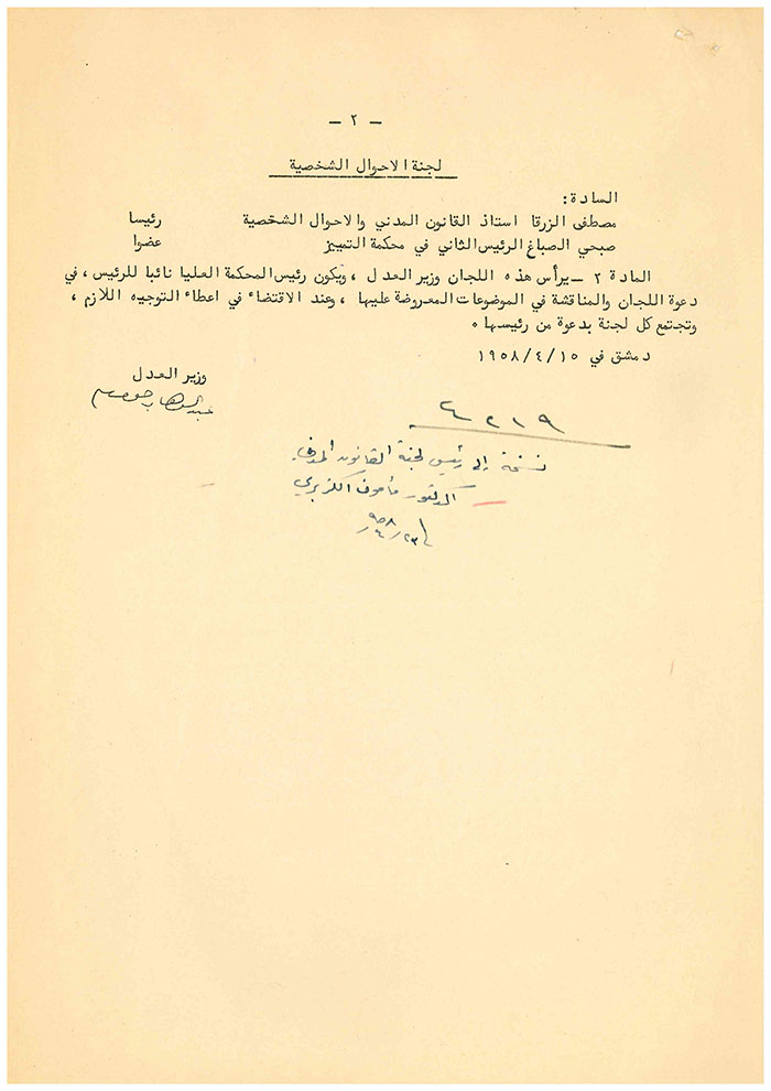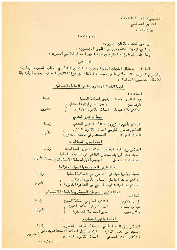 Mamoun Kuzbari appointed as head of Civil Law Committee of the United Arab Republic - 15 April 1958